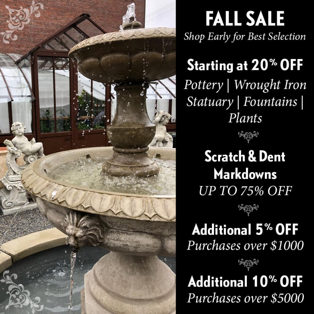 Versailles Gardens of Portland, Oregon, is the largest importer of French garden décor in the Pacific Northwest. We offer a wide selection of French fountains, ceramics, statuary, wrought iron gazebos, earthenware and accessories for outdoor living spaces and gardens.